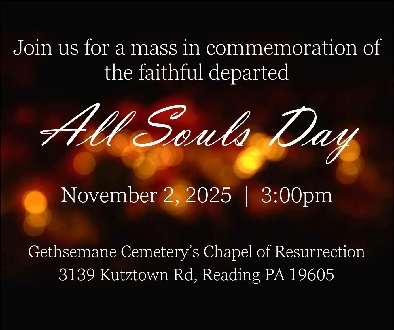 Join us for a mass in commemoration of the faithful departed on All Souls Day – November 2, 2025 at 3pm